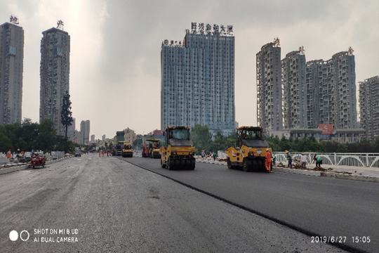我公司承擔的六安市龍河路橋工程瀝青路面經過一天兩夜的艱苦奮戰,于6月28日完成主橋面瀝青攤鋪工程,為7月1日順利通車奠定了基礎。