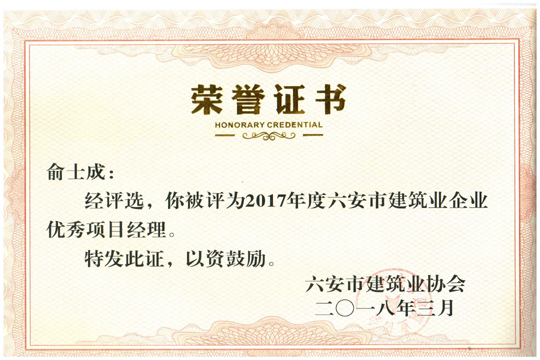 2017年度六安市建筑業企業優秀項目經理