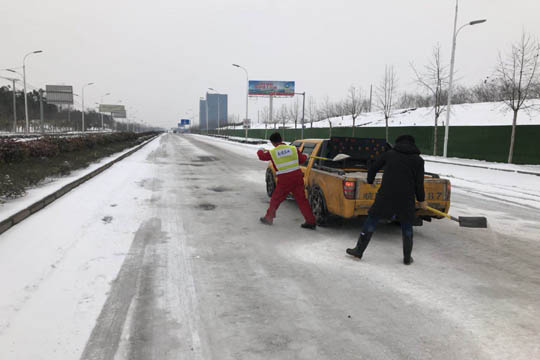 1月24日至25日上午,六安市普降大到暴雪,城區道路積冰積雪達15厘米,六安市交通公路實業有限公司響應六安市公路部門以雪為令的號召,迅速聞雪而動,見雪除雪,晝夜持續開展除雪作業。