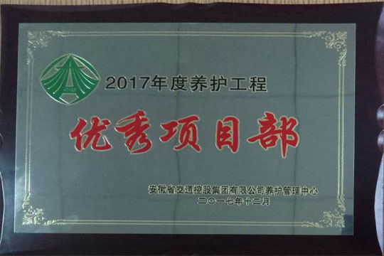 2017年12月14日,2017年度瀝青路面養(yǎng)護(hù)工程交工驗(yàn)收暨總結(jié)表彰大會(huì)在合肥召開(kāi),六安市交通公路實(shí)業(yè)有限公司2017-2019年度安徽省部分高速公路瀝青路面專(zhuān)項(xiàng)養(yǎng)護(hù)工程03標(biāo)項(xiàng)目經(jīng)理部榮獲2017年度養(yǎng)護(hù)工程”優(yōu)秀項(xiàng)目部“和”安全管理先進(jìn)單位“稱(chēng)號(hào)。