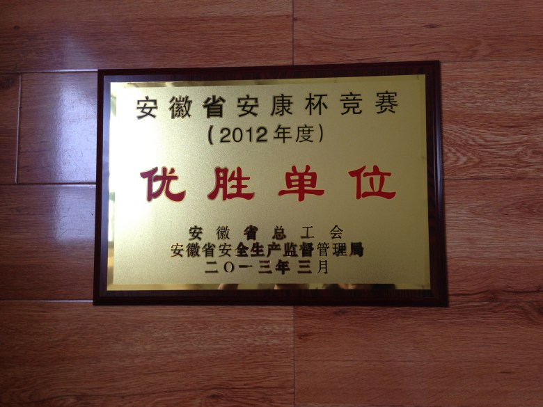 近日,實(shí)業(yè)公司榮獲由安徽省總工會、安徽省安全生產(chǎn)監(jiān)督管理局頒發(fā)的安徽省2012年安康杯競賽“優(yōu)勝單位”稱號。